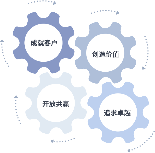 成就客户是一切决策的出发点,创造价值是衡量所有工作的标准,追求卓越是HJC黄金城做事做人的态度,开放共赢是HJC黄金城的格局也是最终的结果。价值观的齿轮环环相扣,推动着组织里的每个人不断向前。